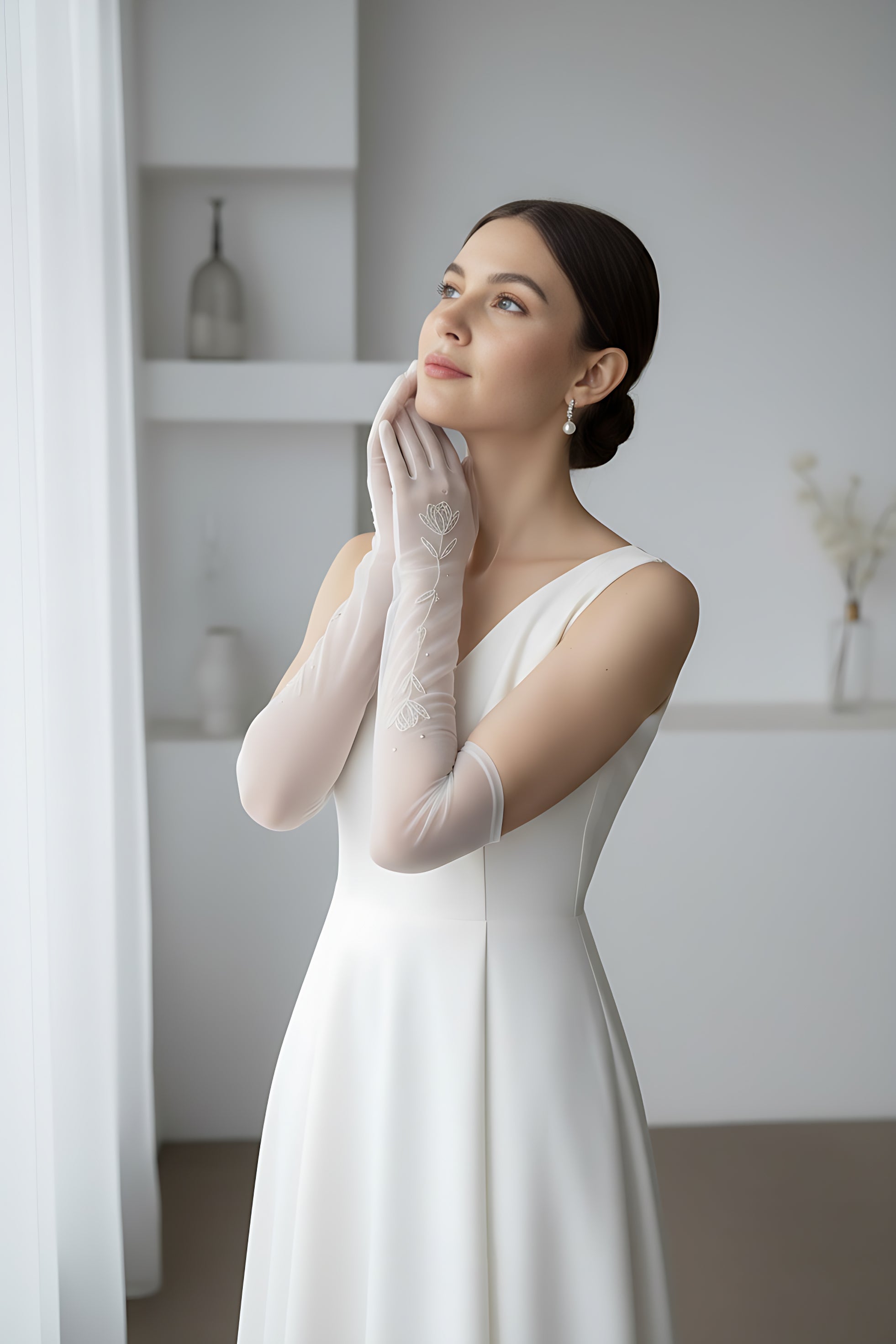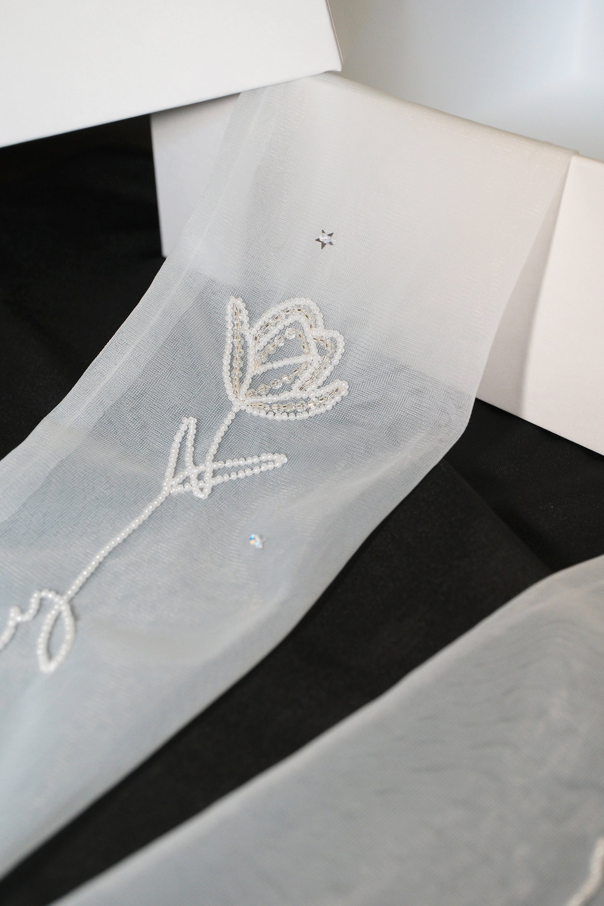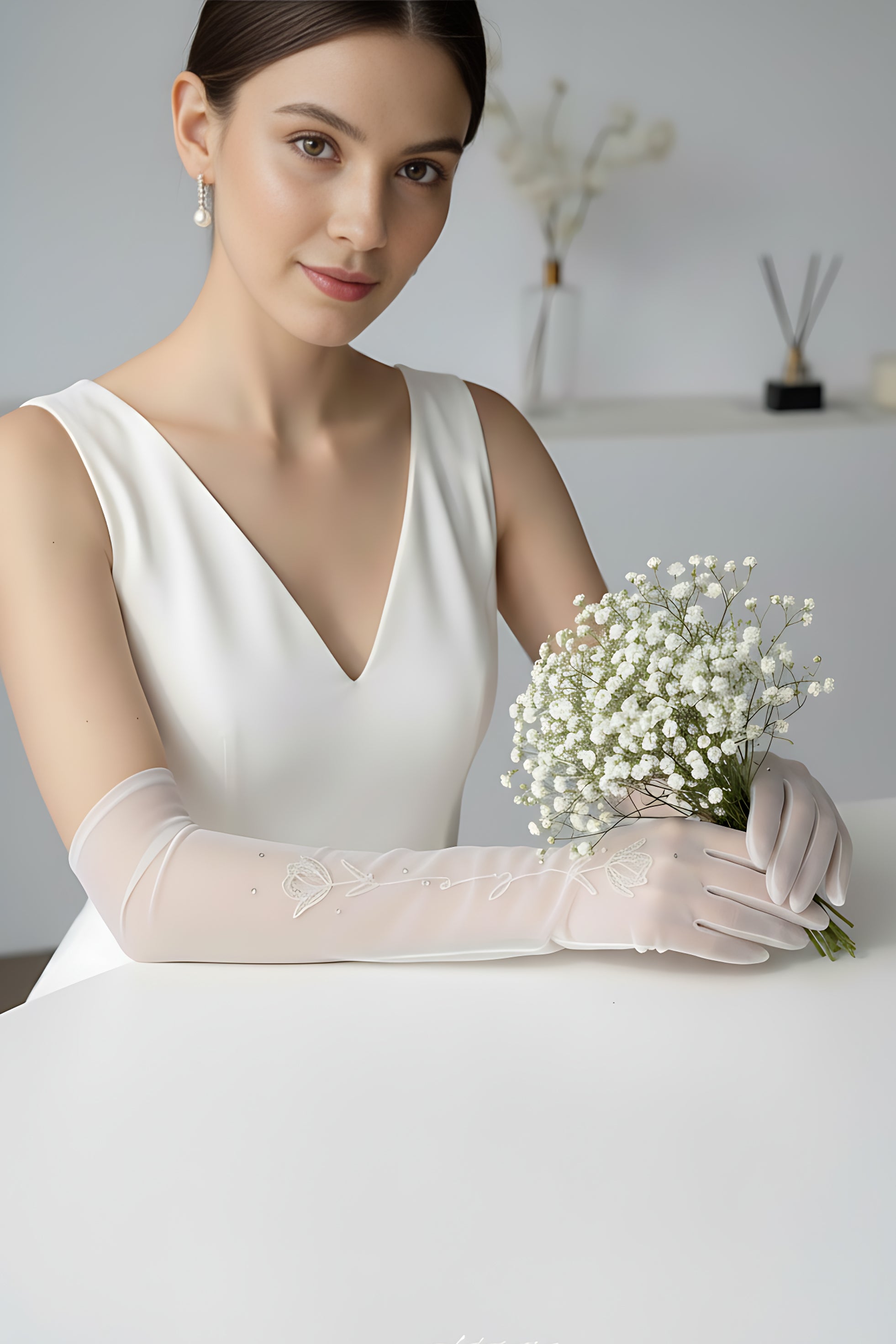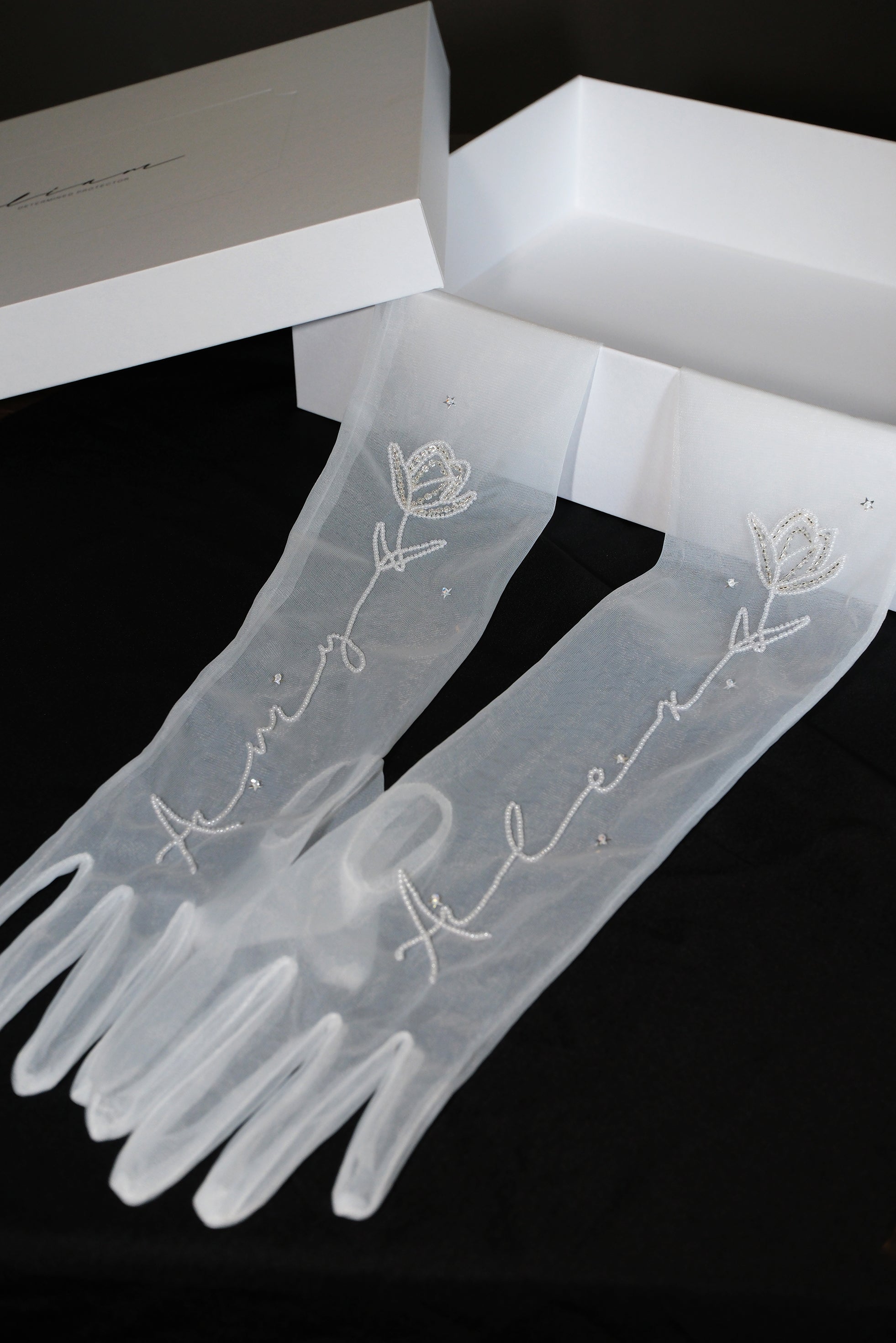 You can create a timeless design that beautifully captures your love story and celebrates your special day. Whether you prefer something bold or understated, this finishing detail ensures your gloves is as unforgettable as the moments it accompanies.