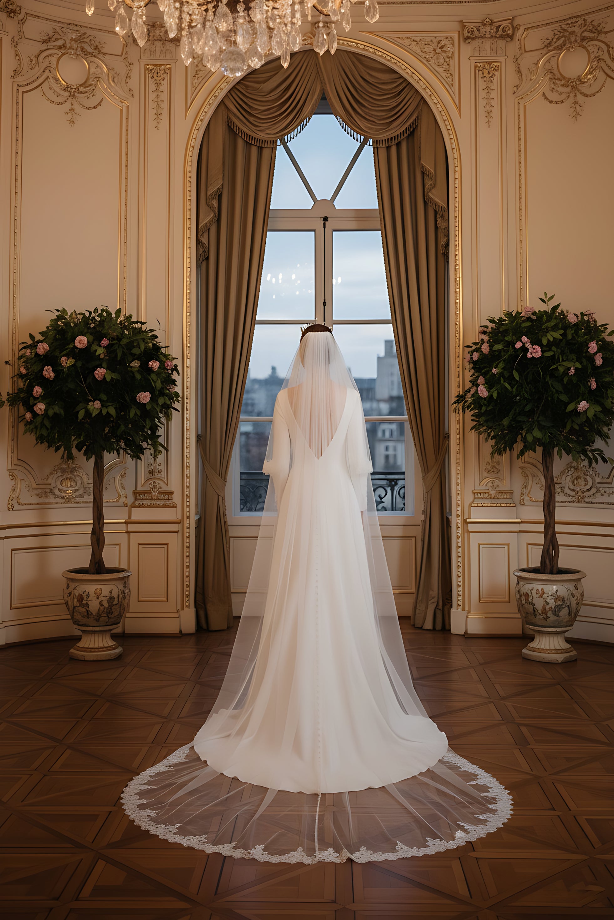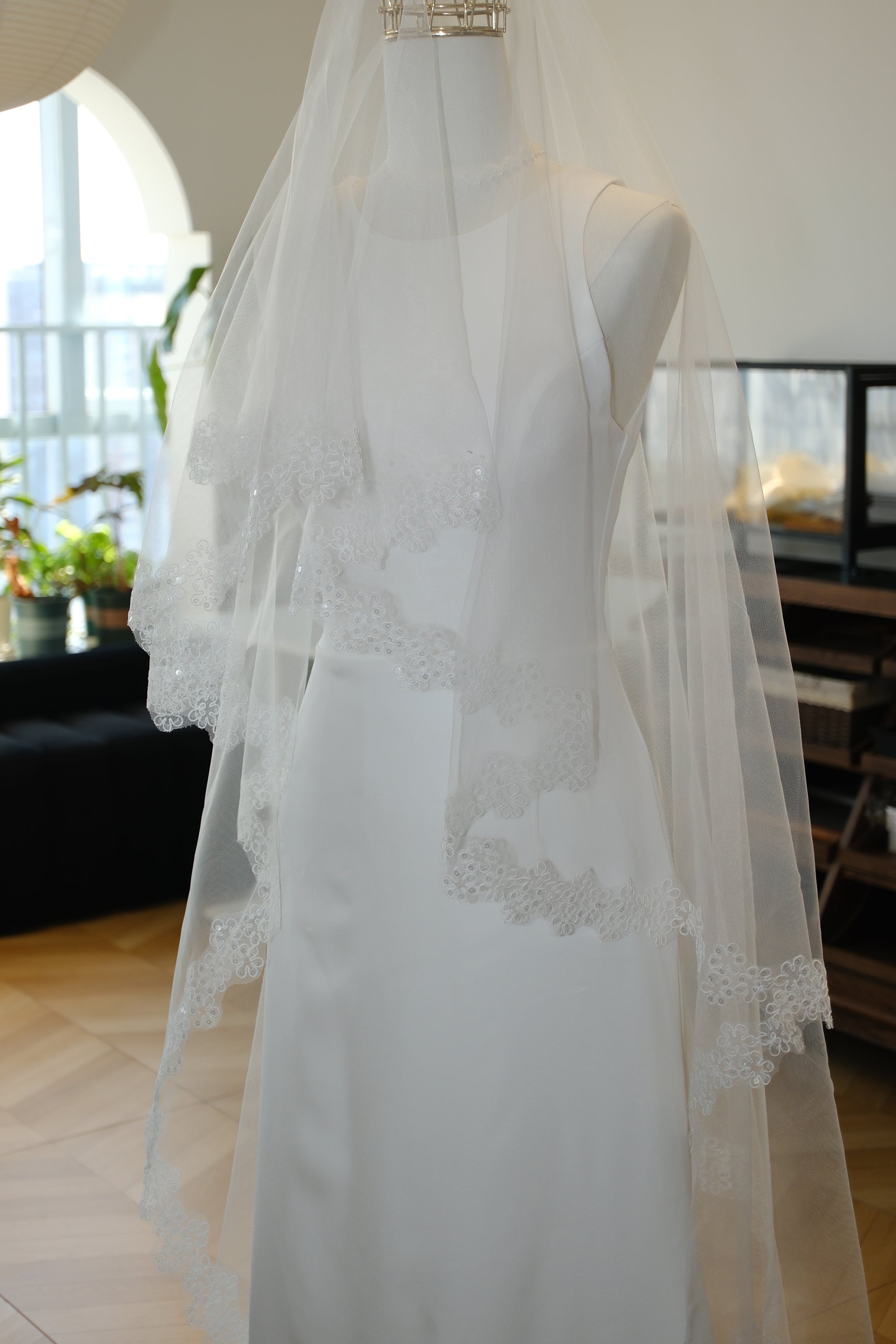 • Take your veil out of the packaging and hang it up in a safe place until you want to wear it.
