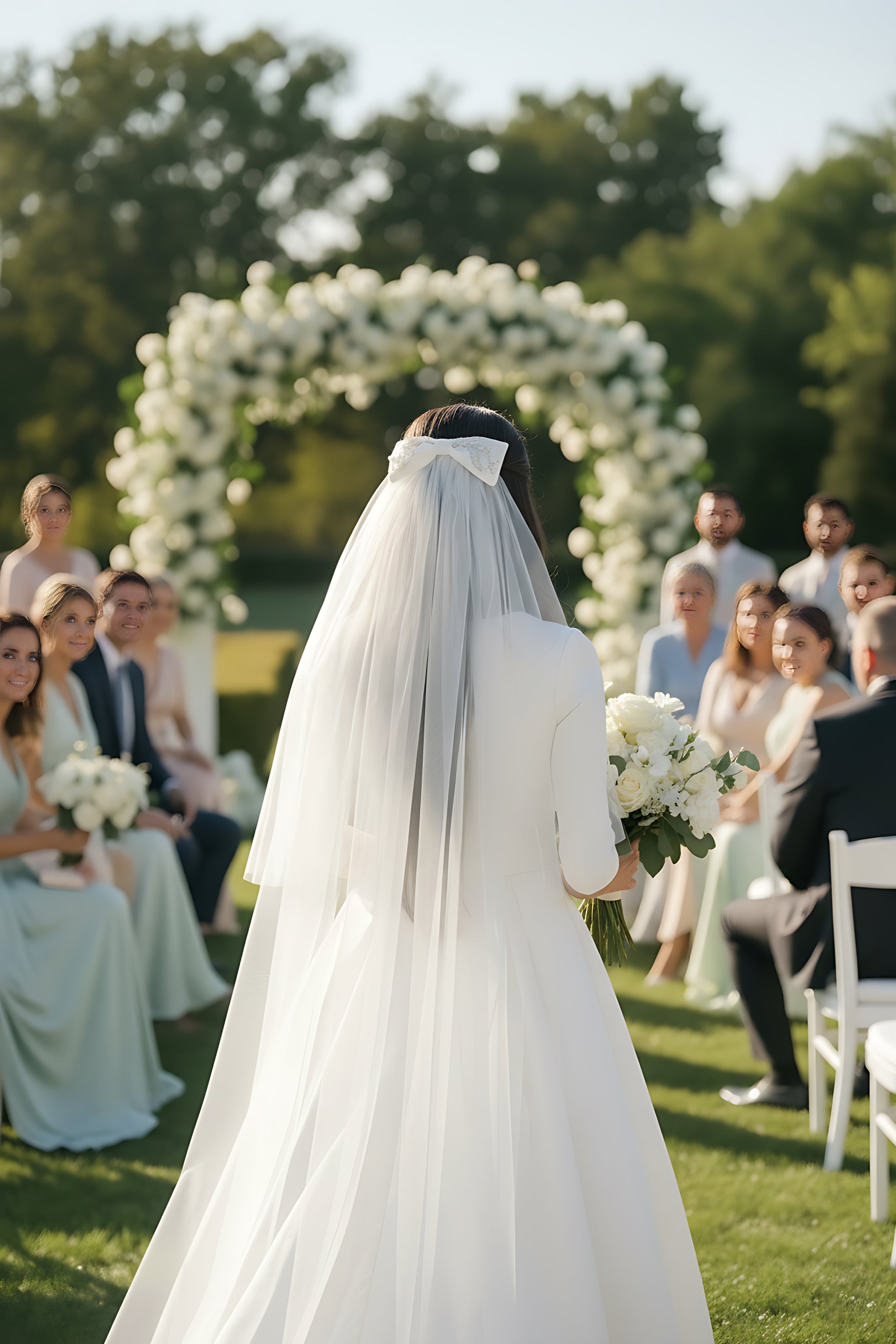 - Detachable Veil: The lightweight, sheer veil can be easily attached or removed, offering versatility to transition from a formal ceremony to a reception with ease. Wear it for the classic bridal entrance, then remove the veil for dancing and celebration, leaving just the stylish bow.